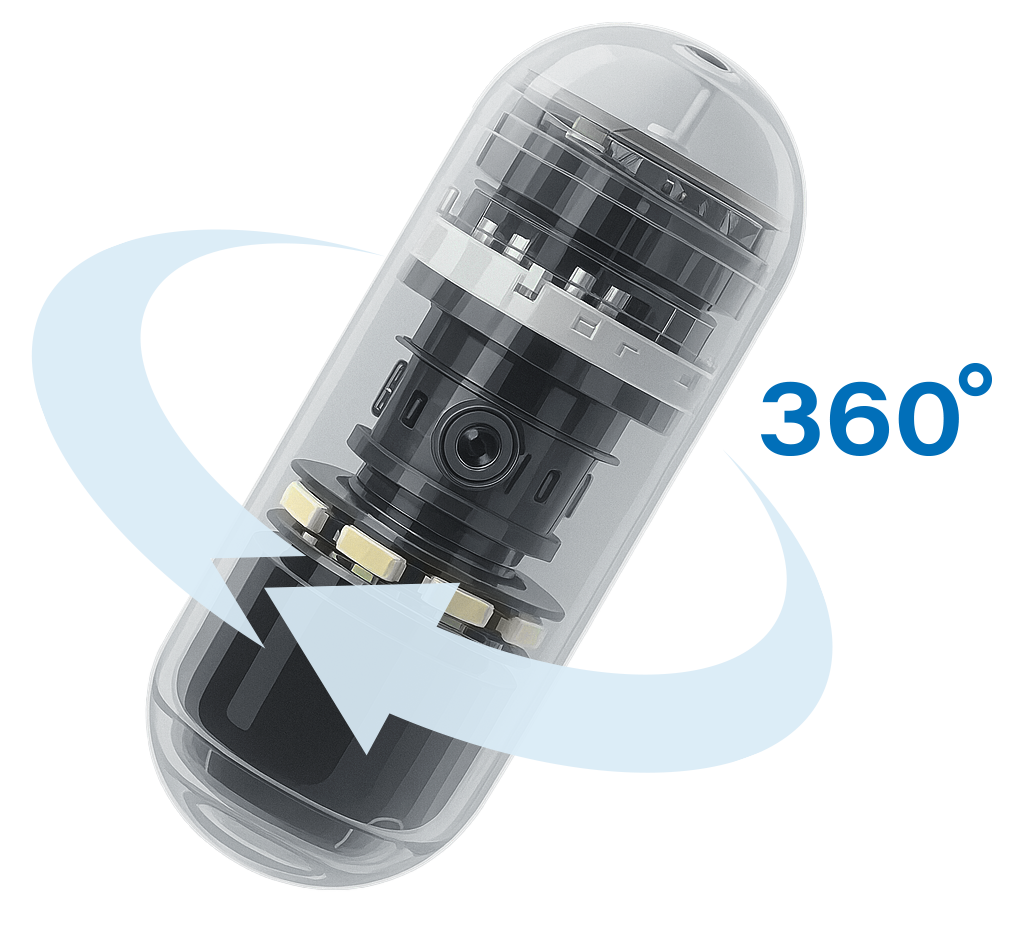 De CapsoCam Plus-capsule voor de dunne darm is uitgerust met vier hoogwaardige camera’s, strategisch rondom de capsule geplaatst. Zo legt het systeem een volledig 360-graden beeld vast van het maag-darmkanaal – geen blinde vlekken, alleen een compleet overzicht. De camera’s maken haarscherpe beelden met een gezamenlijke snelheid tot 20 frames per seconde (5 FPS per camera).
